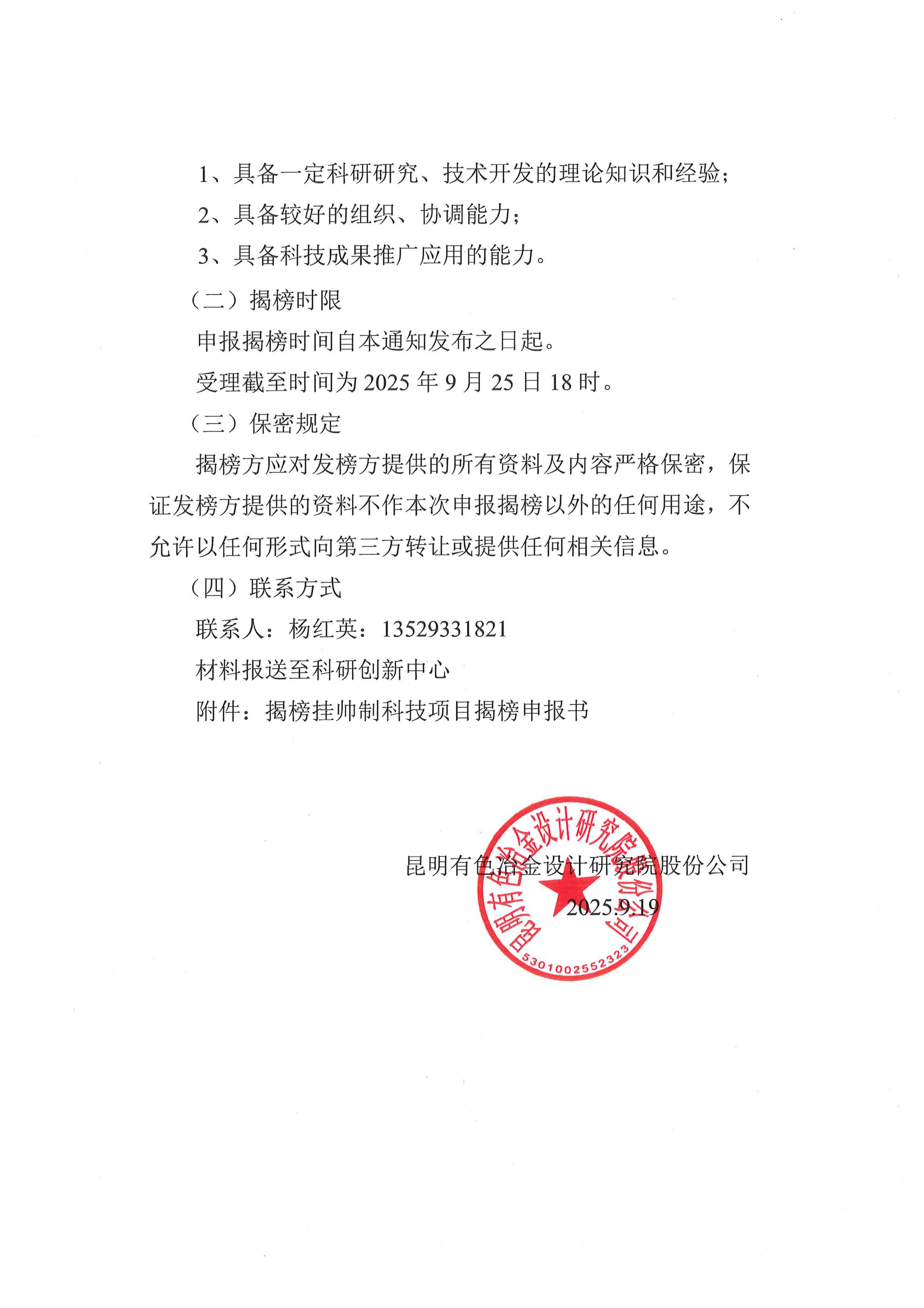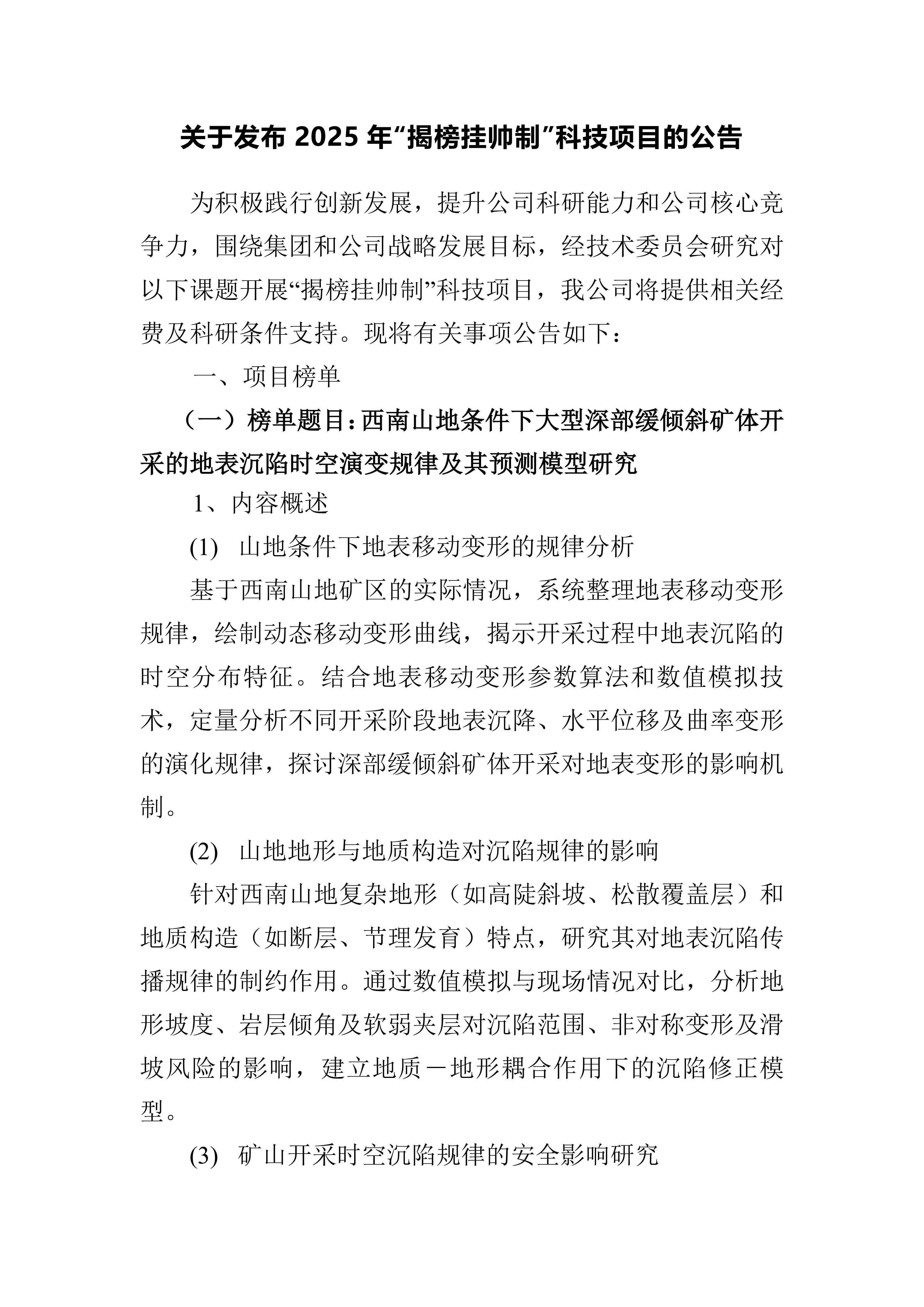 关于发布2025年“揭榜挂帅制”科技项目的公告