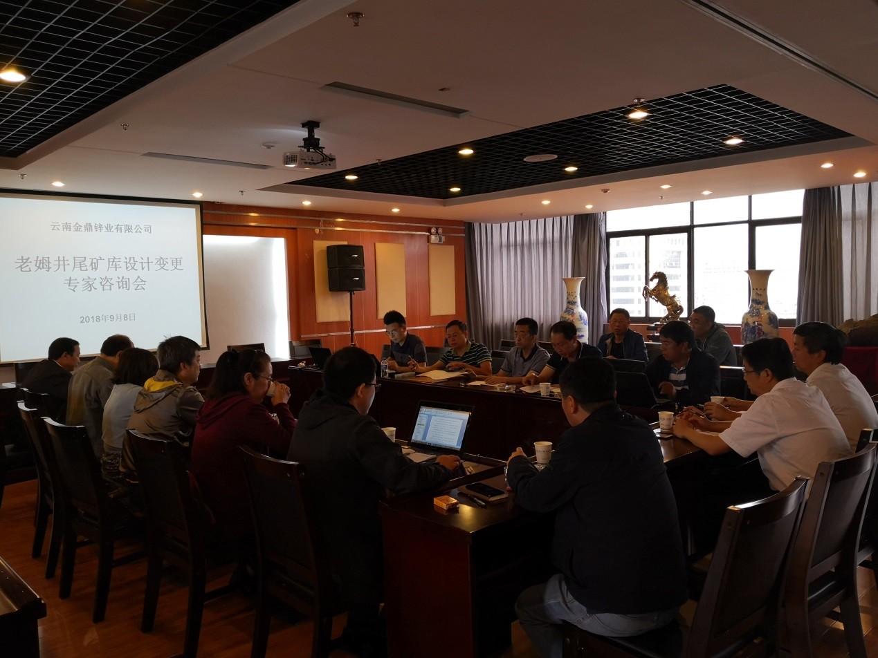 2018年9月8日,云南金鼎锌业有限公司(以下简称金鼎锌业)总经理和金保、党委书记何光深、副总经理李四光、副总工程师李学清、总经理助理和金山一行到我院在十六楼会议室召开“老姆井尾矿库设计变更”专家咨询会。